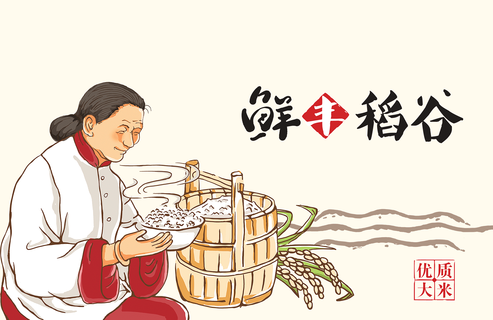 以稻米的新鮮為核心主題,系列產品中,每一個單品都是當年出產的新米,稻谷鮮豐諧音道谷仙風,將中華民族潛意識中最悠久最深刻的桃源文化挖掘出來,讓自然田園的閑適味道與產品的新鮮清新相結合,創造出獨屬于品牌的清香印象。視覺方面使用手繪水彩風格的插畫,描繪出勤勞耕作,樸實煮米的老媽媽的形象,搭配手寫毛筆字,將產品豐饒清香的特點通過插畫表現出來,穩重大地色系傳遞出品牌踏實的氣質,給人以安心之感。
