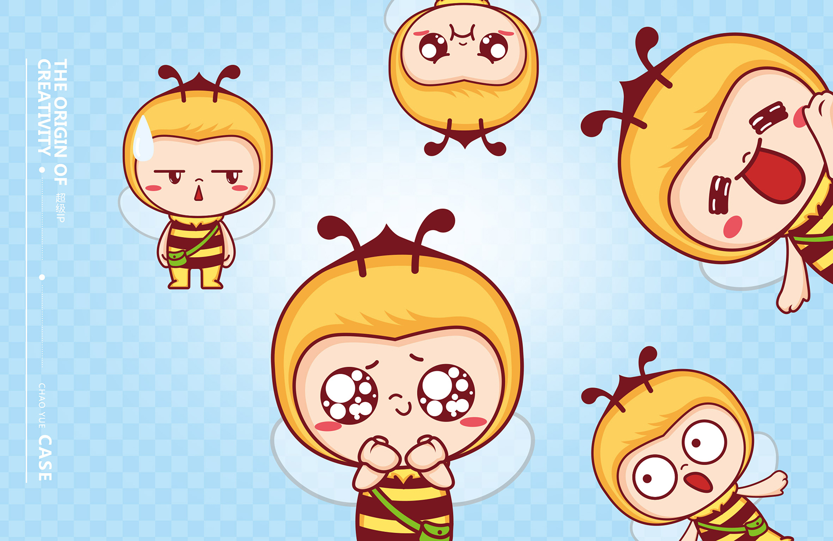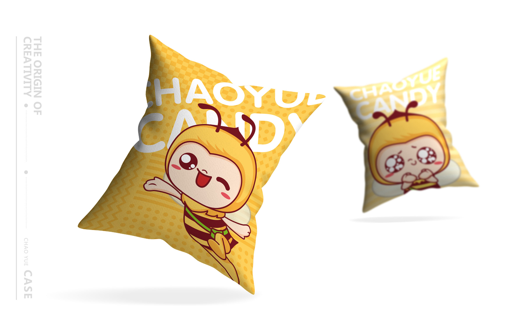 品牌主營的老式糖果在目標消費者新中式過去艱苦歲月的一絲絲幸福,而超越糖果的使命與最宗目的是為廣大消費者創(chuàng)造美味,體驗幸福,正如蜜蜂在消費者心中是勤勞、靈動的象征,一看到蜜蜂會下意識想到蜂蜜,進而聯(lián)想到糖果的甜蜜與芬芳。結(jié)合創(chuàng)始人至今人就在生產(chǎn)崗位上辛勤工作,這份堅守正是超越所代表的的深厚品牌文化的體現(xiàn),所以繽策在眾多蘊藏著文化原力的富豪中選擇了蜜蜂的形象,加之一束花處理,讓形象更符合時下年輕人的審美,賦予了IP活潑可愛,軟萌逗趣的性格特征,有效的拉近與消費者之間的距離,具象化品牌文化與品牌精神,讓消費者能夠一眼辨認出品牌,便于記憶與傳播。