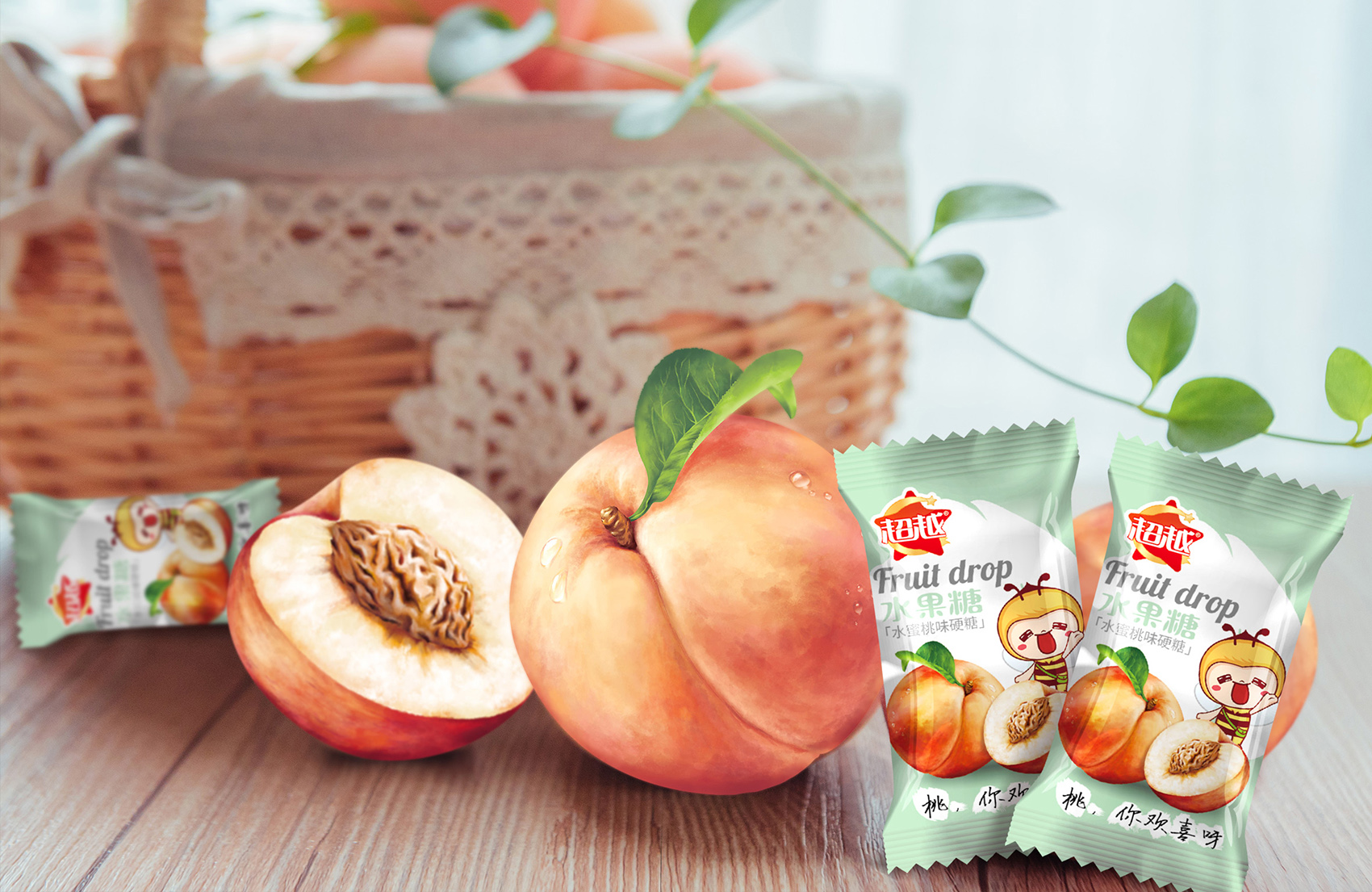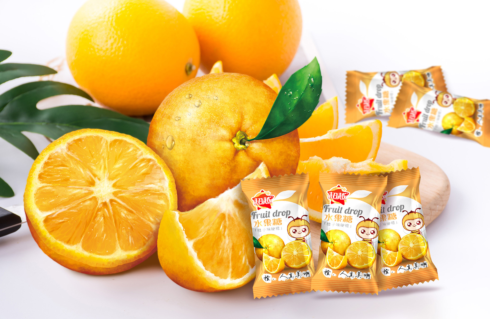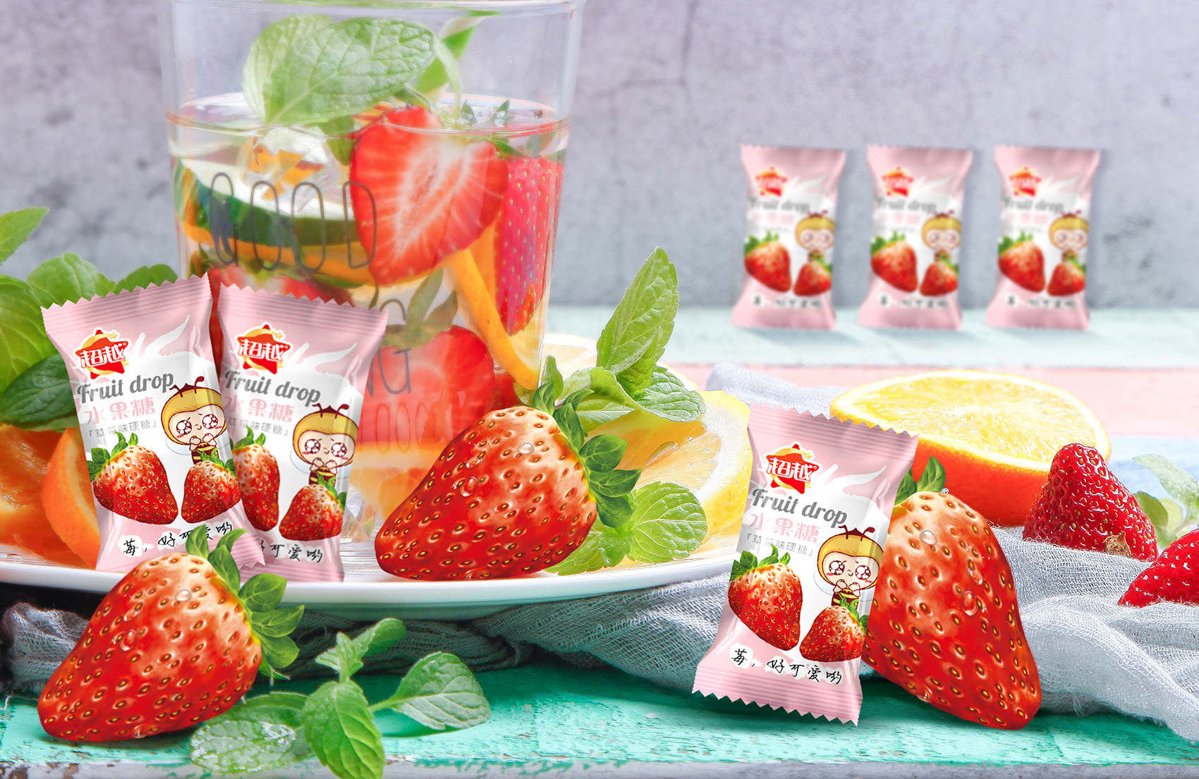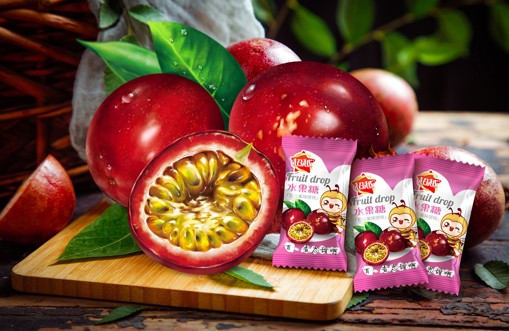 新式水果糖面向的目標消費人群為年輕群體,而刺激購買欲的最好手段就是真實攝影元素,利用逼真的視覺刺激引導(dǎo)消費者進一步聯(lián)想,為了更好的與其他常規(guī)的糖果包裝相區(qū)隔,畫面中的水果插畫采用了真實向的厚涂畫風,與常規(guī)使用完整的水果相比,切片的水果更能凸顯鮮嫩多汁,飽滿甜蜜的感覺,在視覺上引發(fā)消費者食欲,激發(fā)購買欲望。在色調(diào)上,使用與產(chǎn)品口味對應(yīng)的水果本色,強調(diào)了水果糖的屬性,色調(diào)上活潑鮮艷,鮮明突出,惹人喜愛;整體包裝以超級符號為基礎(chǔ),產(chǎn)品特點突出,時尚大方,符合現(xiàn)代消費者審美,整體兼具記憶點與美感,便于消費者記憶識別傳播。